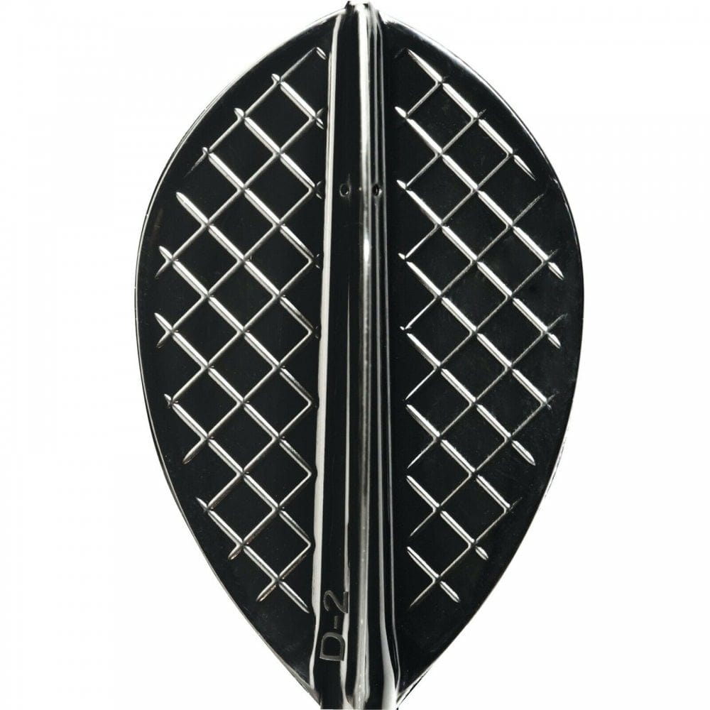 Cosmo Fit Flight Pro - D-Series - D-2 in black. The Fit Flight Pro is the most innovative Flight and Shaft System. Common Flight Shapes are installed by pushing the full flight system onto the shaft, creating a complete unit. These black D-Series flights are loosely based on a teardrop shape flight, in varying widths. Only to be used with Cosmo Fit Shafts.