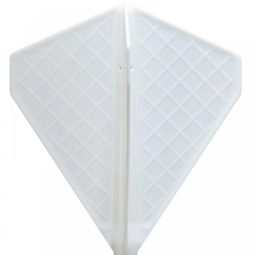 Cosmo Fit Flight Pro - V-series - V-4 in white. The Fit Flight Pro is the most innovative Flight and Shaft System. Common Flight Shapes are installed by pushing the full flight system onto the shaft, creating a complete unit. These white V-Series dart flights are based on the kite flights with varying degrees of widths. Only to be used with Cosmo Fit Shafts.