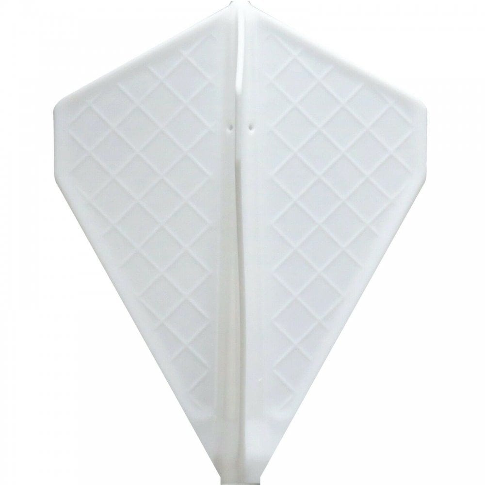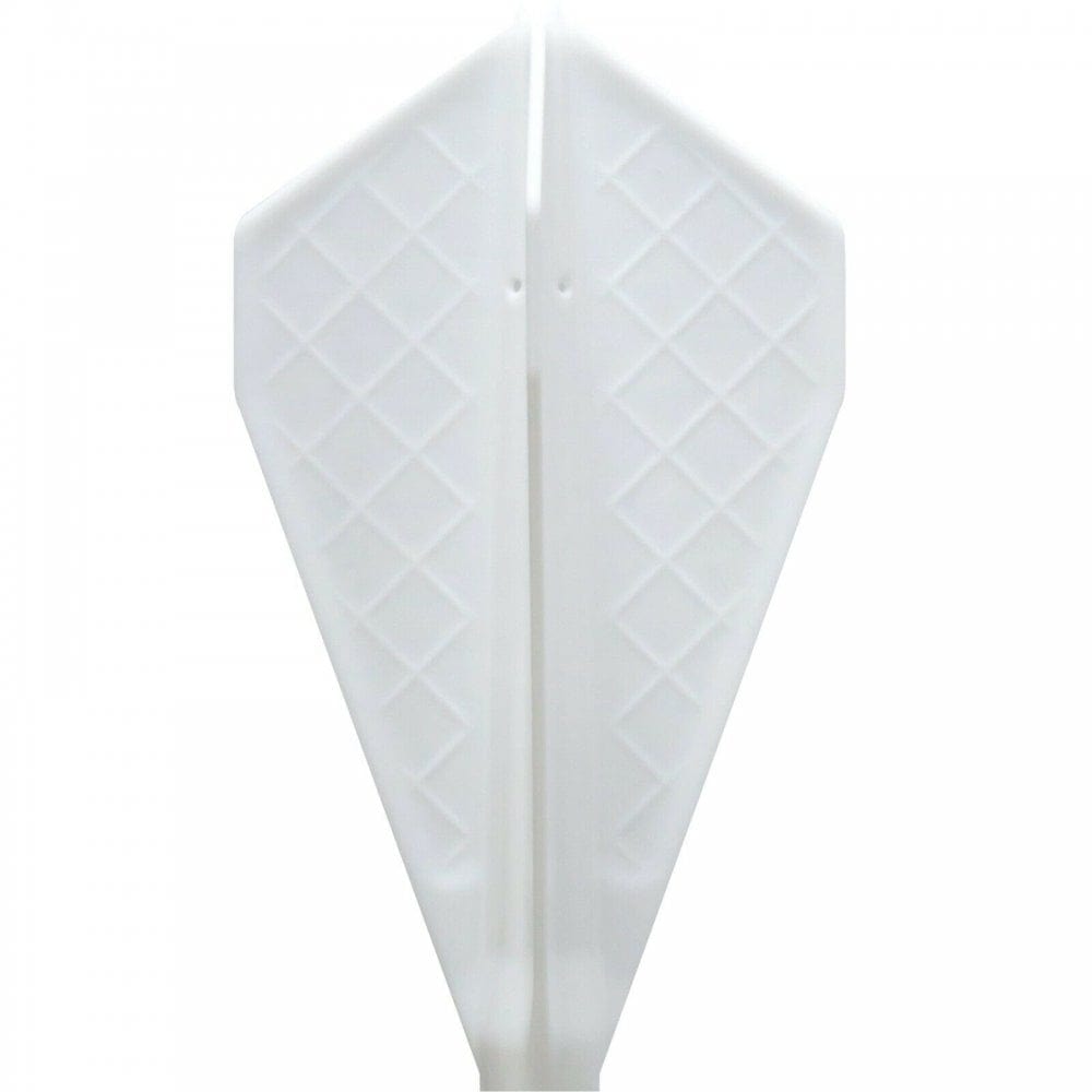 Cosmo Fit Flight Pro - V-series - V-1 in white. The Fit Flight Pro is the most innovative Flight and Shaft System. Common Flight Shapes are installed by pushing the full flight system onto the shaft, creating a complete unit. These white V-Series dart flights are based on the kite flights with varying degrees of widths. Only to be used with Cosmo Fit Shafts.