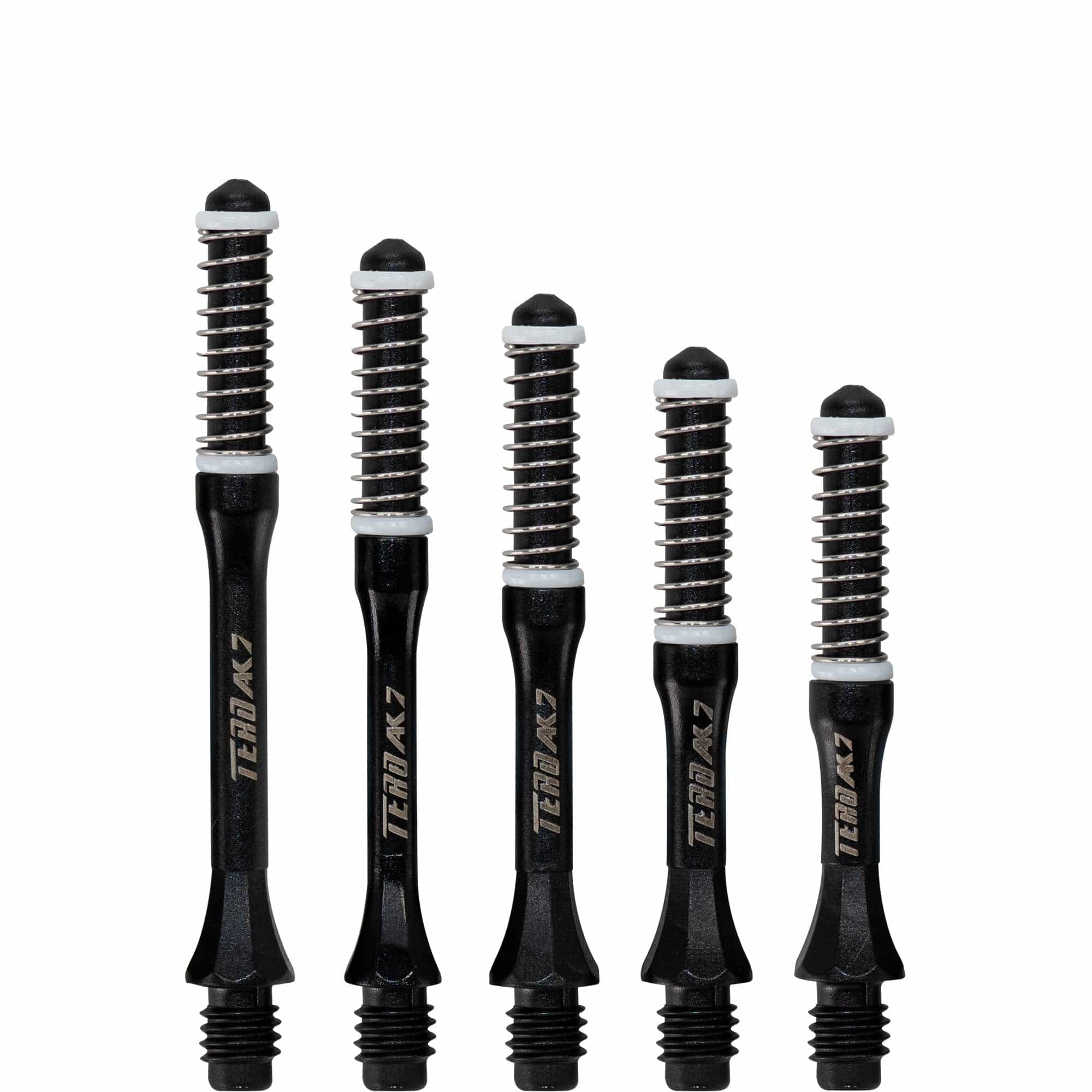 Cuesoul - Tero Dart Shafts - Slim - Solid - Black - 37mm. Features octagon shape at the base of the stem to make tightening the stem easier. The stem measurement provided is the full length of the stem, 37mm, with the visible part being approx 10mm shorter. To be used with the Tero AK4 flights, these look great with the Black flights.