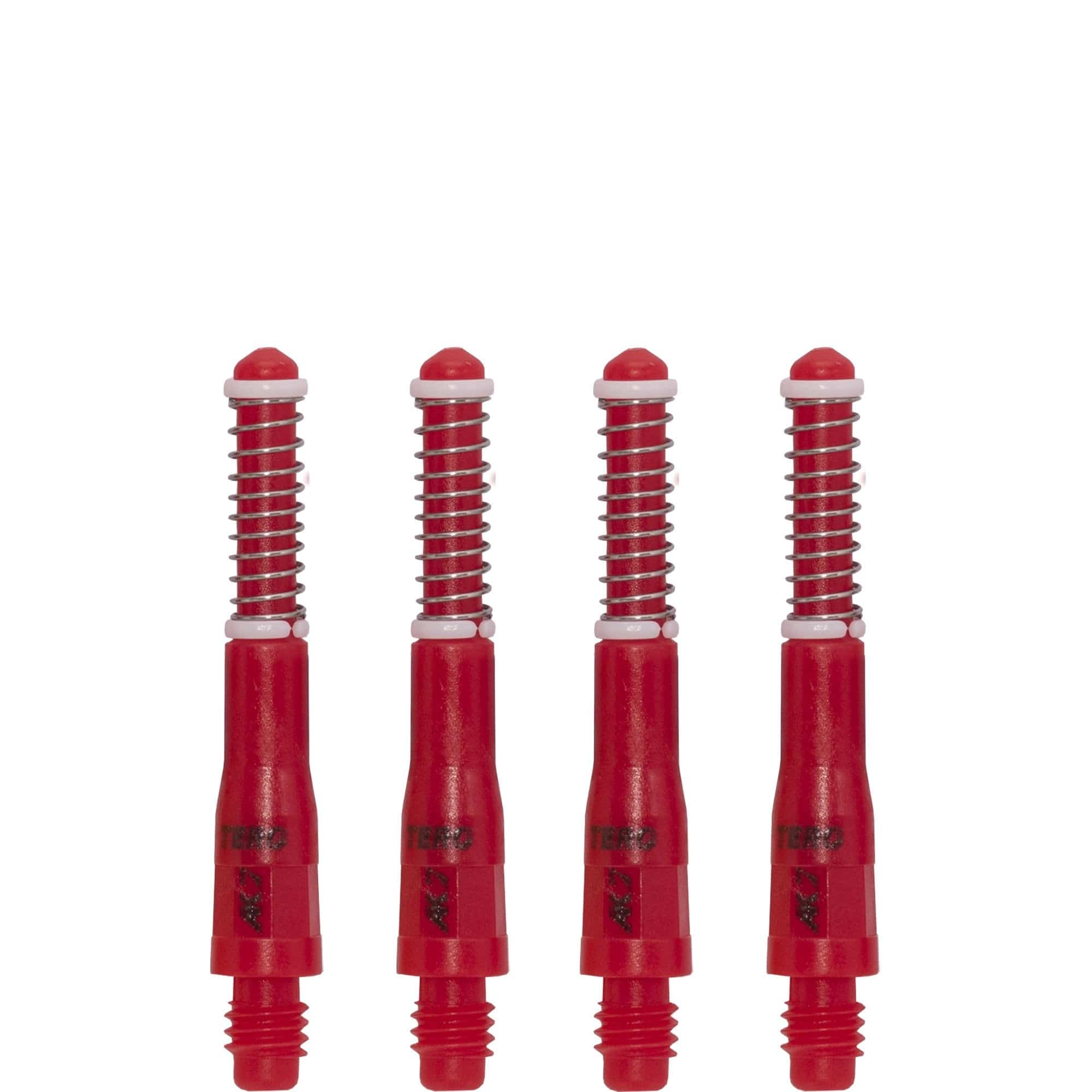 Cuesoul - Tero Dart Shafts - Standard - Solid - Red - 40mm. Features octagon shape at the base of the stem to make tightening the stem easier. The stem measurement provided is the full length of the stem, 40mm, with the visible part being approx 10mm shorter. To be used with the Tero AK4 flights, these look great with the red flights.