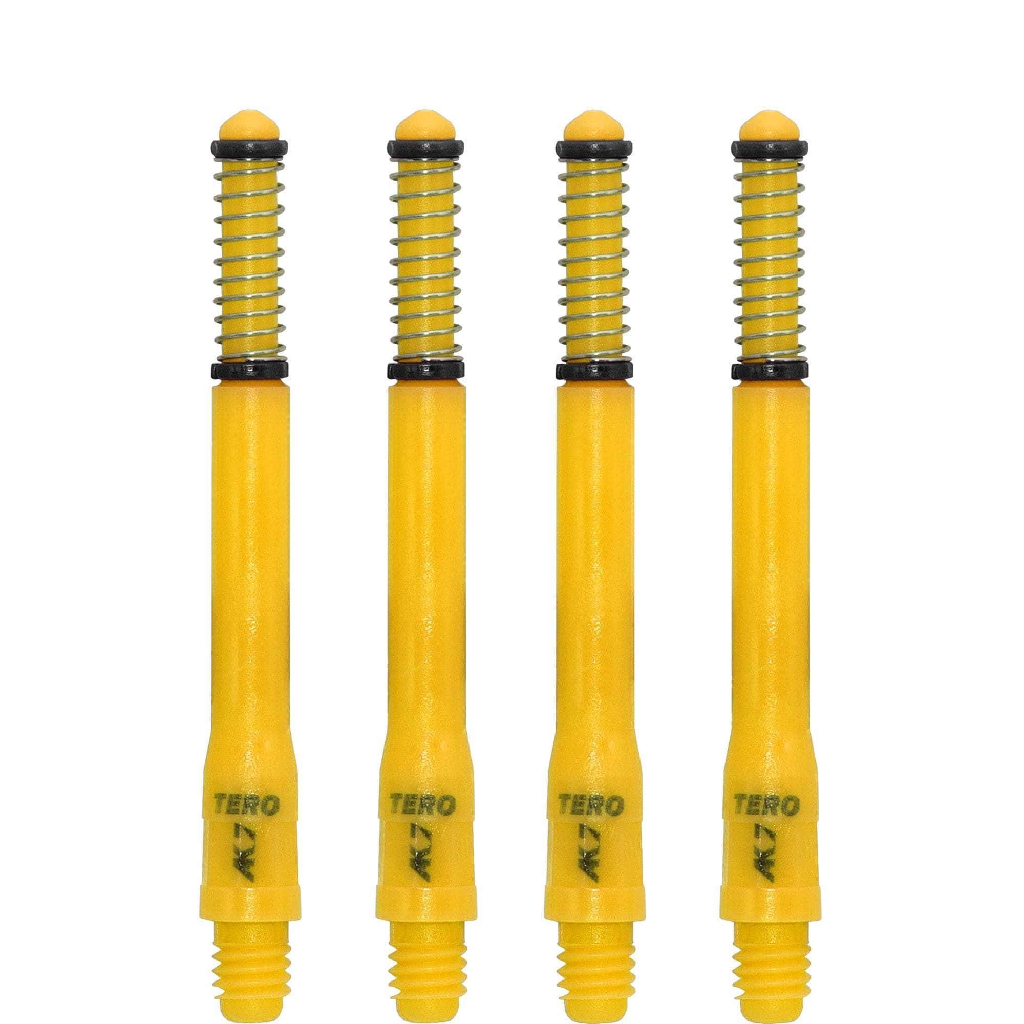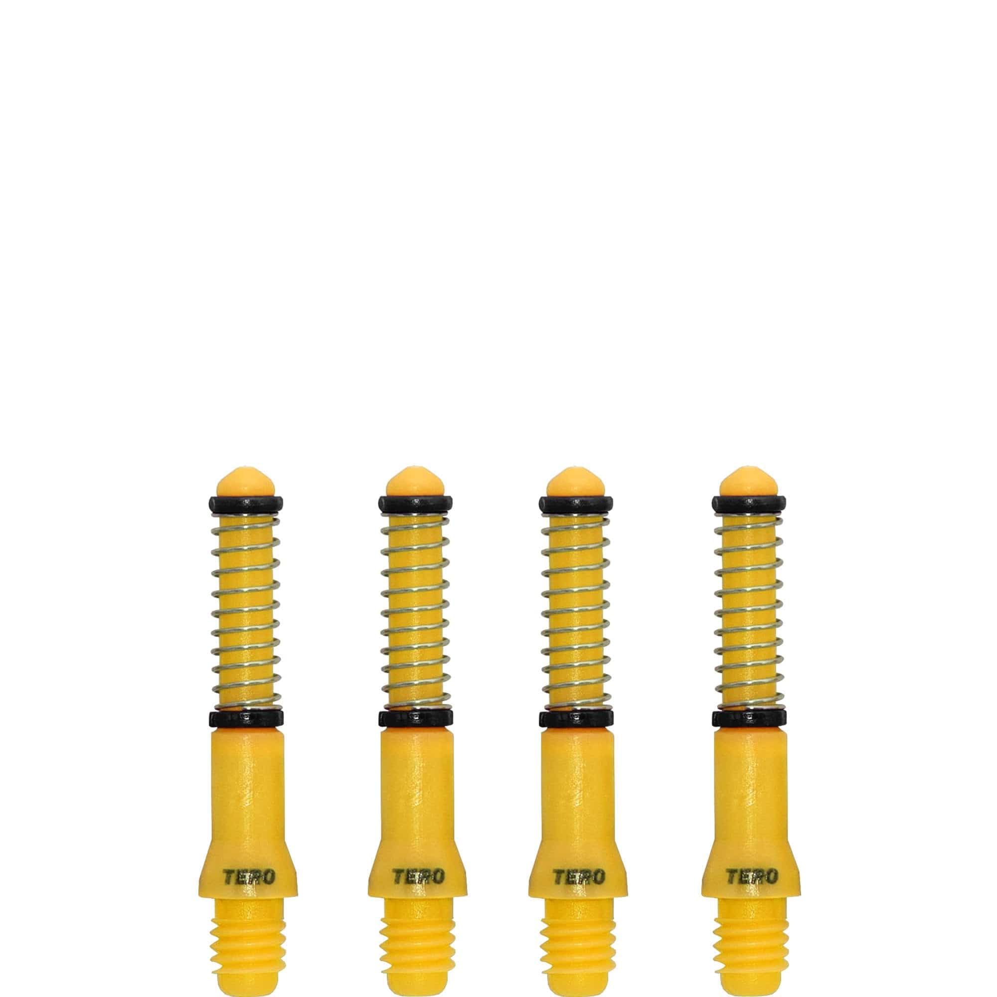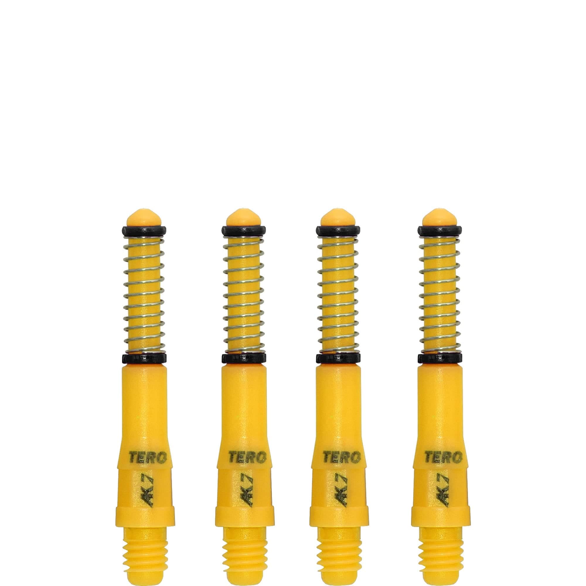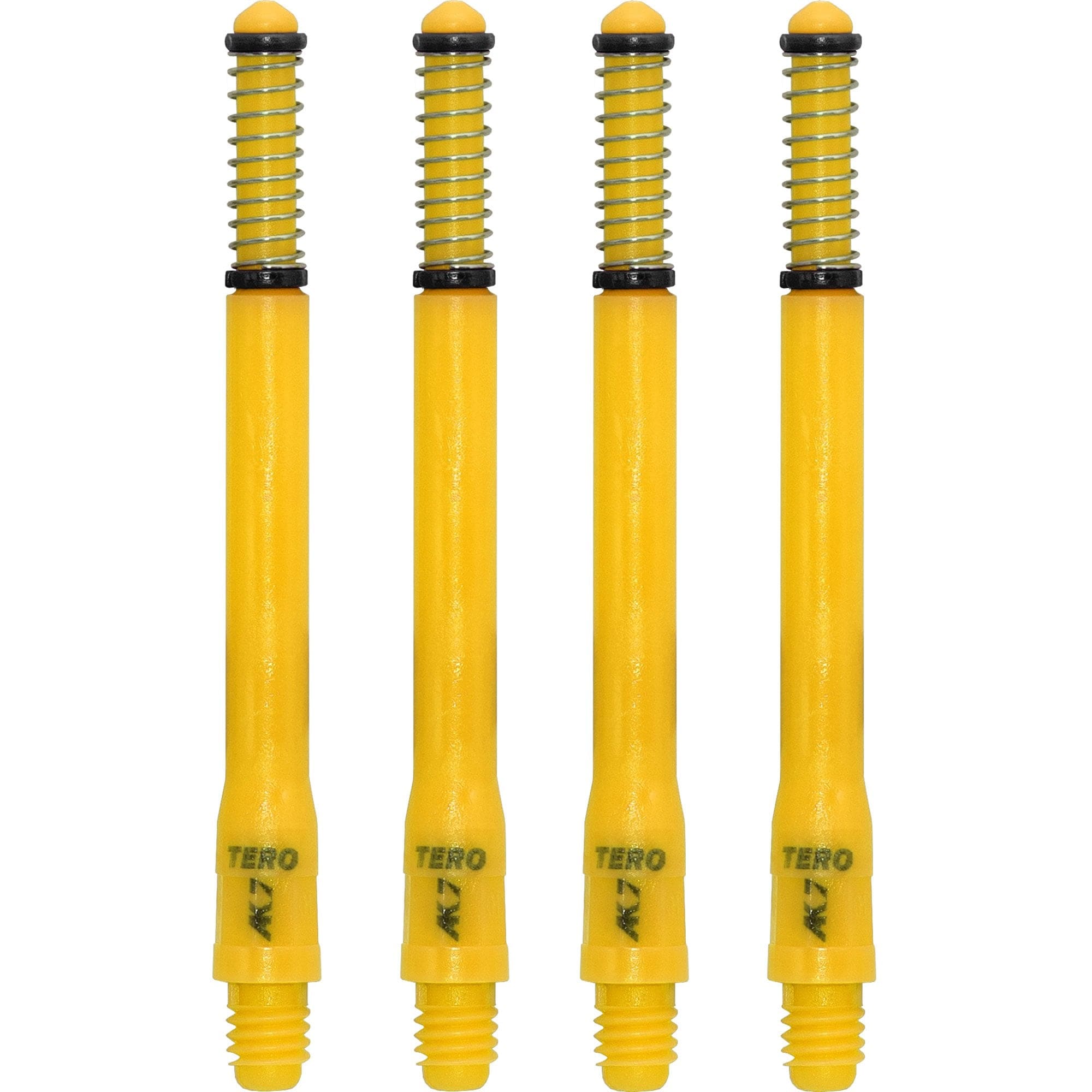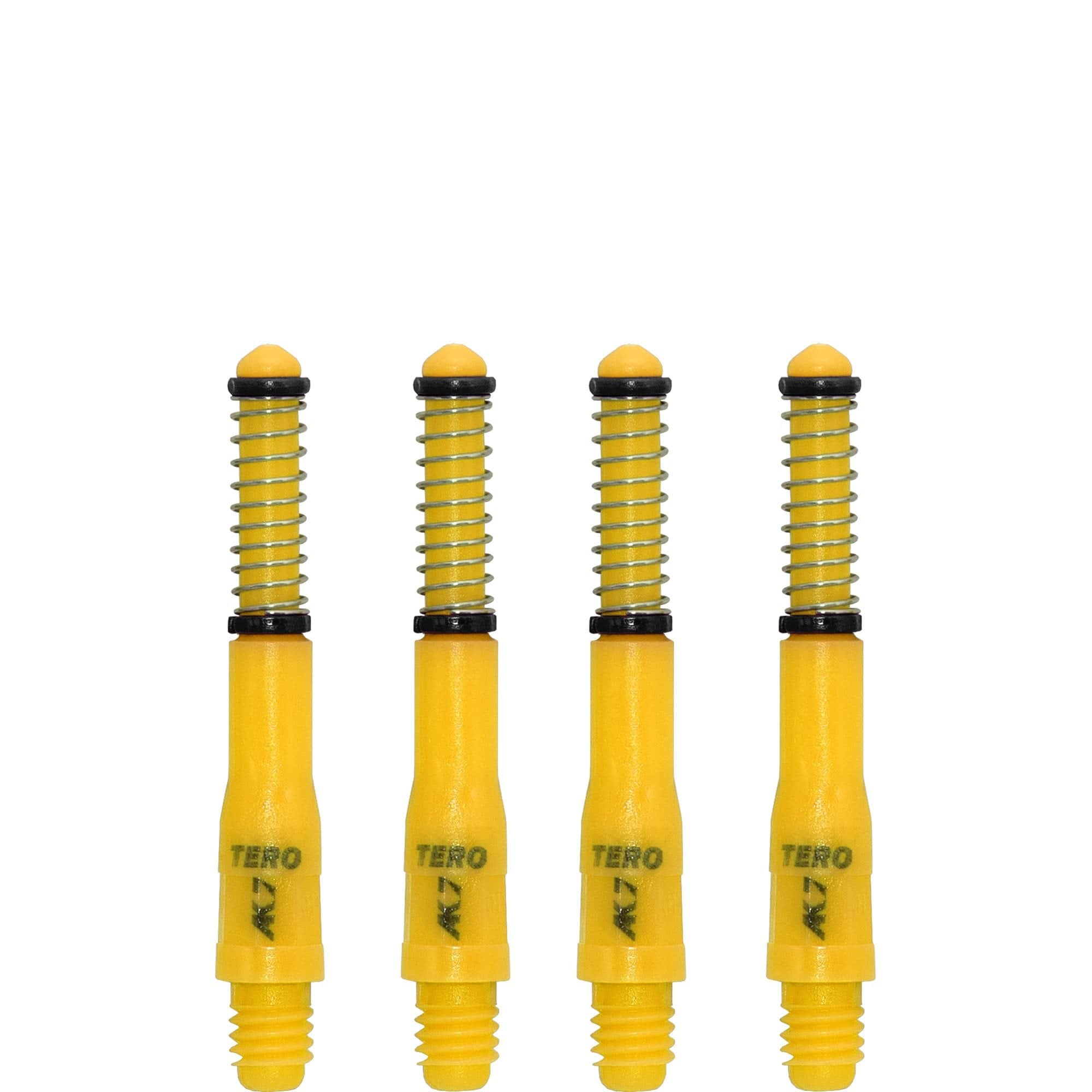 Cuesoul - Tero Dart Shafts - Standard - Solid - Yellow - 37mm. Features octagon shape at the base of the stem to make tightening the stem easier. The stem measurement provided is the full length of the stem, 37mm, with the visible part being approx 10mm shorter. To be used with the Tero AK4 flights, these look great with the yellow flights.