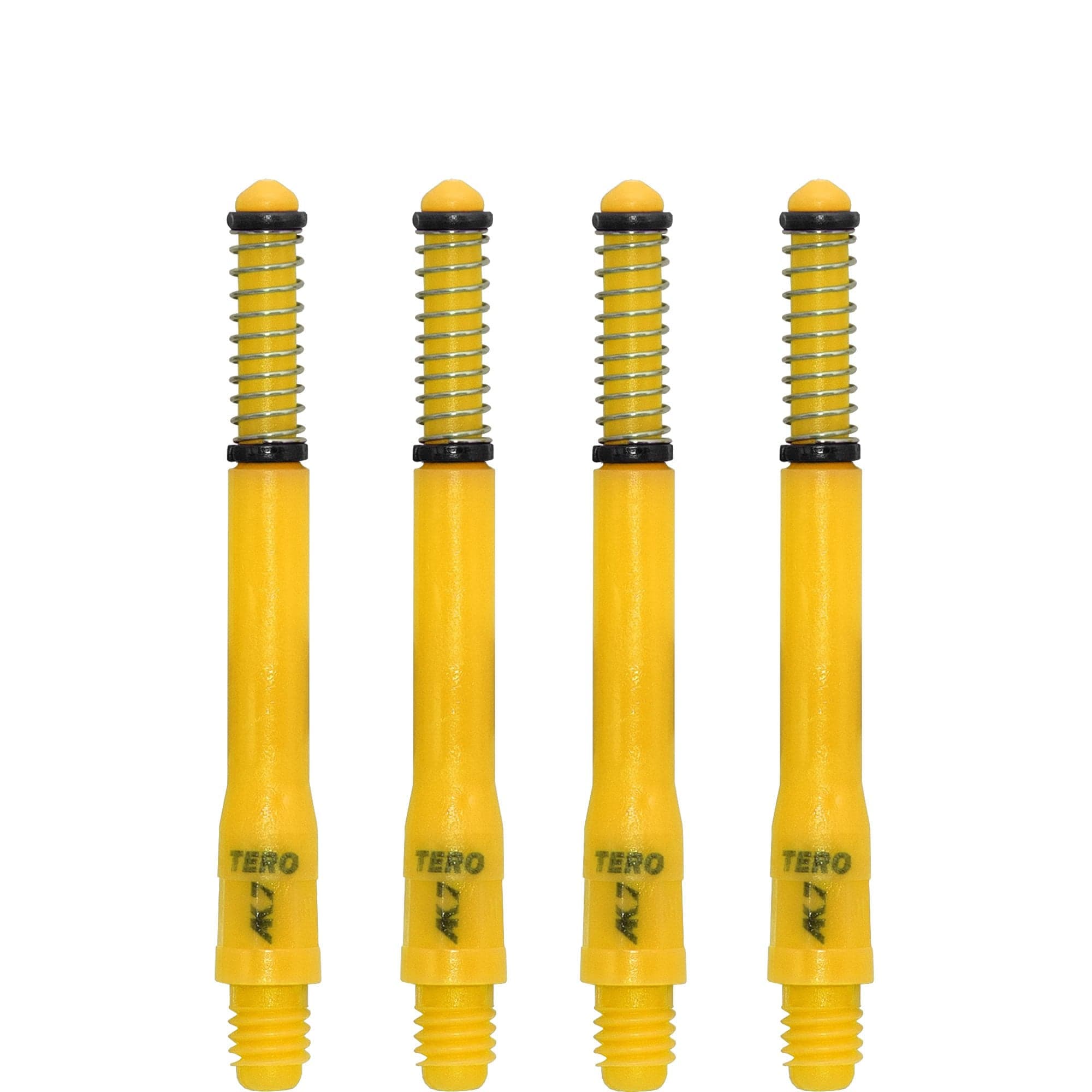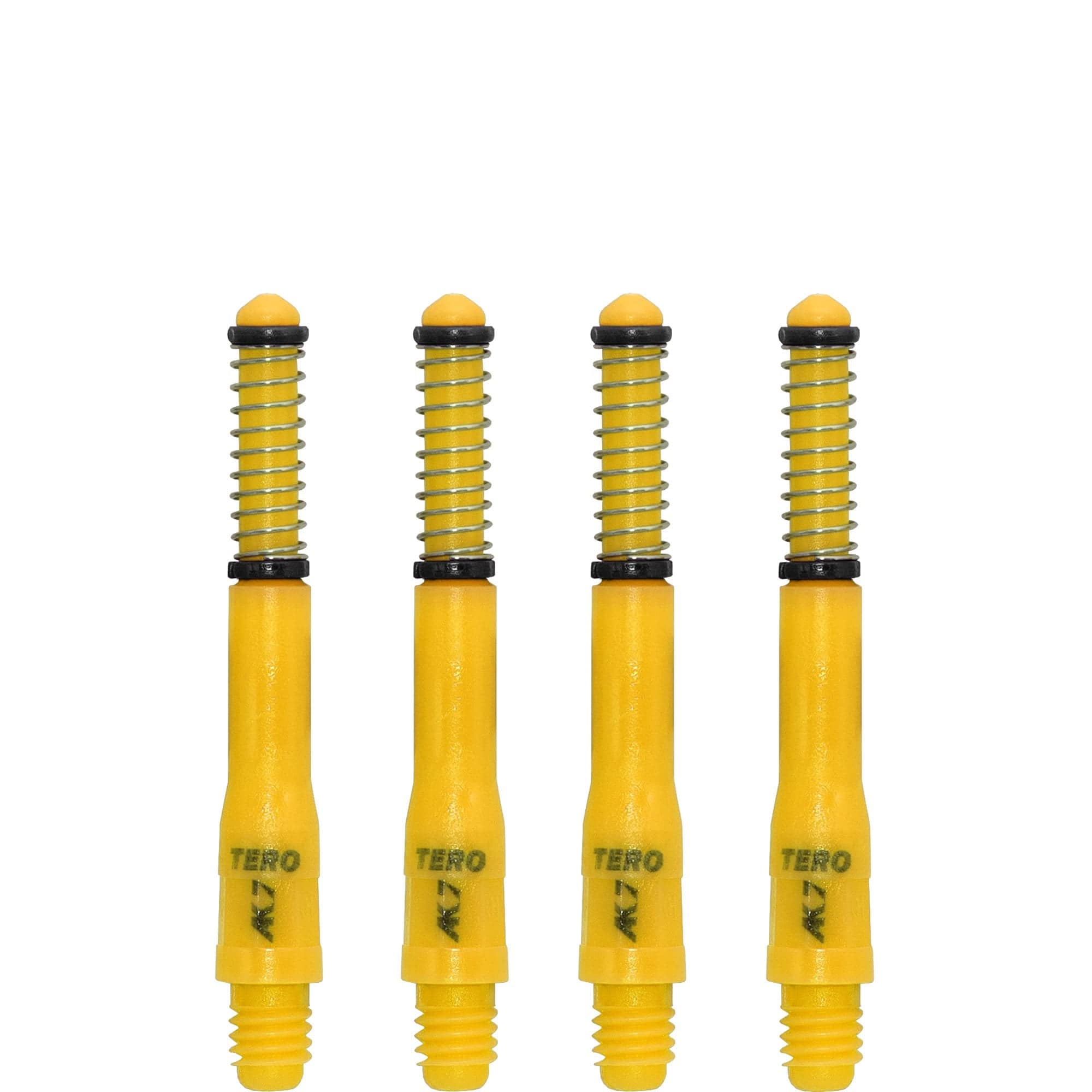 Cuesoul - Tero Dart Shafts - Standard - Solid - Yellow - 34mm. Features octagon shape at the base of the stem to make tightening the stem easier. The stem measurement provided is the full length of the stem, 34mm, with the visible part being approx 10mm shorter. To be used with the Tero AK4 flights, these look great with the yellow flights.