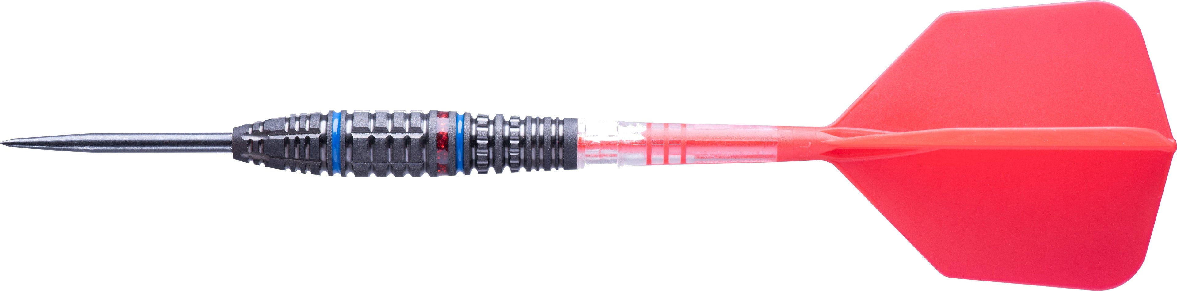 Cuesoul Engine V4 Darts - Steel Tip - 90% Tungsten - Hope Ring - Red - 21g. Welcome to the Cuesoul Engine range of darts. Expertly machined with unique high level of grip designs, they are coated in a black titanium finish with a blue ring incorporated in to the design. Each set also carrys an integrated coloured hope ring in the barrel design. Complete with colour matching integrated flights and shafts.