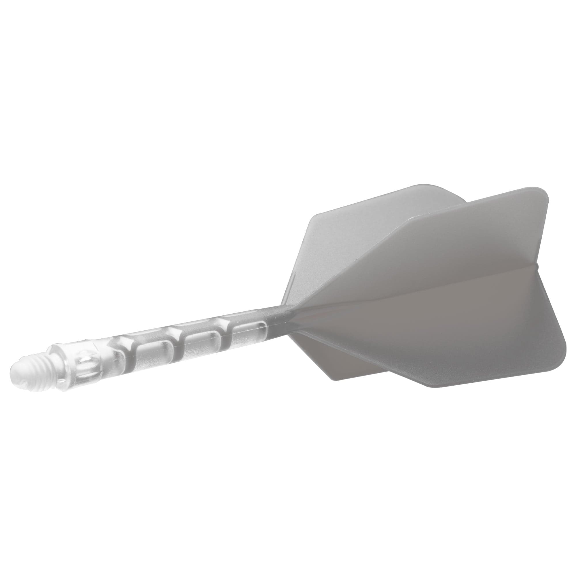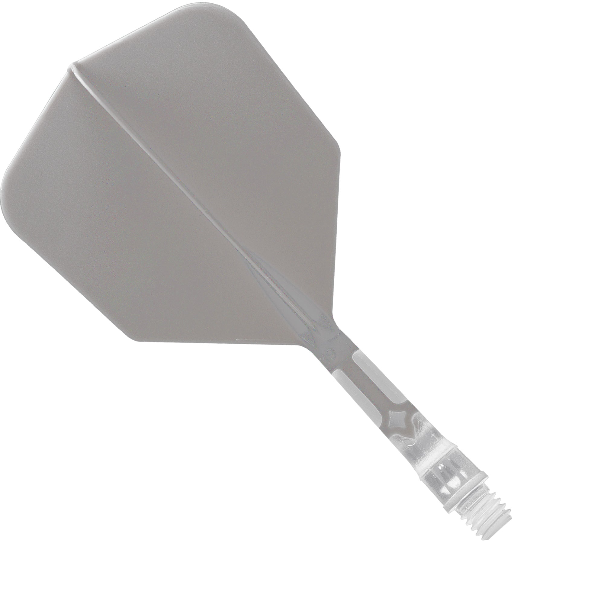 Cuesoul Rost T19 Integrated clear dart shaft and big wing grey flights. This fully moulded system screws into the barrel, just as with a standard stem. The grey moulded flight features a reinforcing rib to help prevent Robin Hooding. The long clear dart shaft is measured for what is visible once the dart is assembled. Shaft length: 33mm