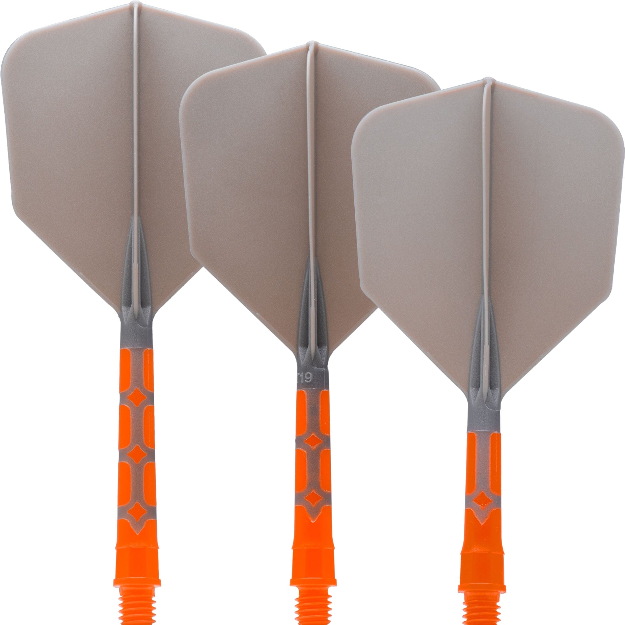 Cuesoul Rost T19 Integrated Dart Shaft and Flights. Orange colour Shaft with Grey Flight comes in a Size S and a Big Wing shape. Ideal choice for players who tire of picking up flights and want to try the new ROST T19 flight system. Each pack contains 3 flights.