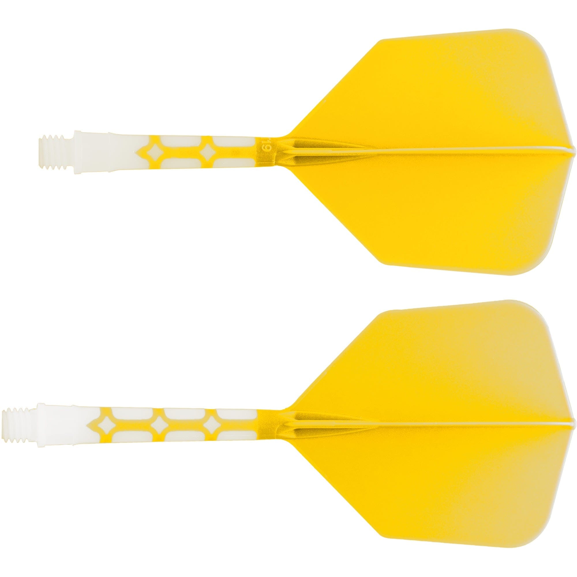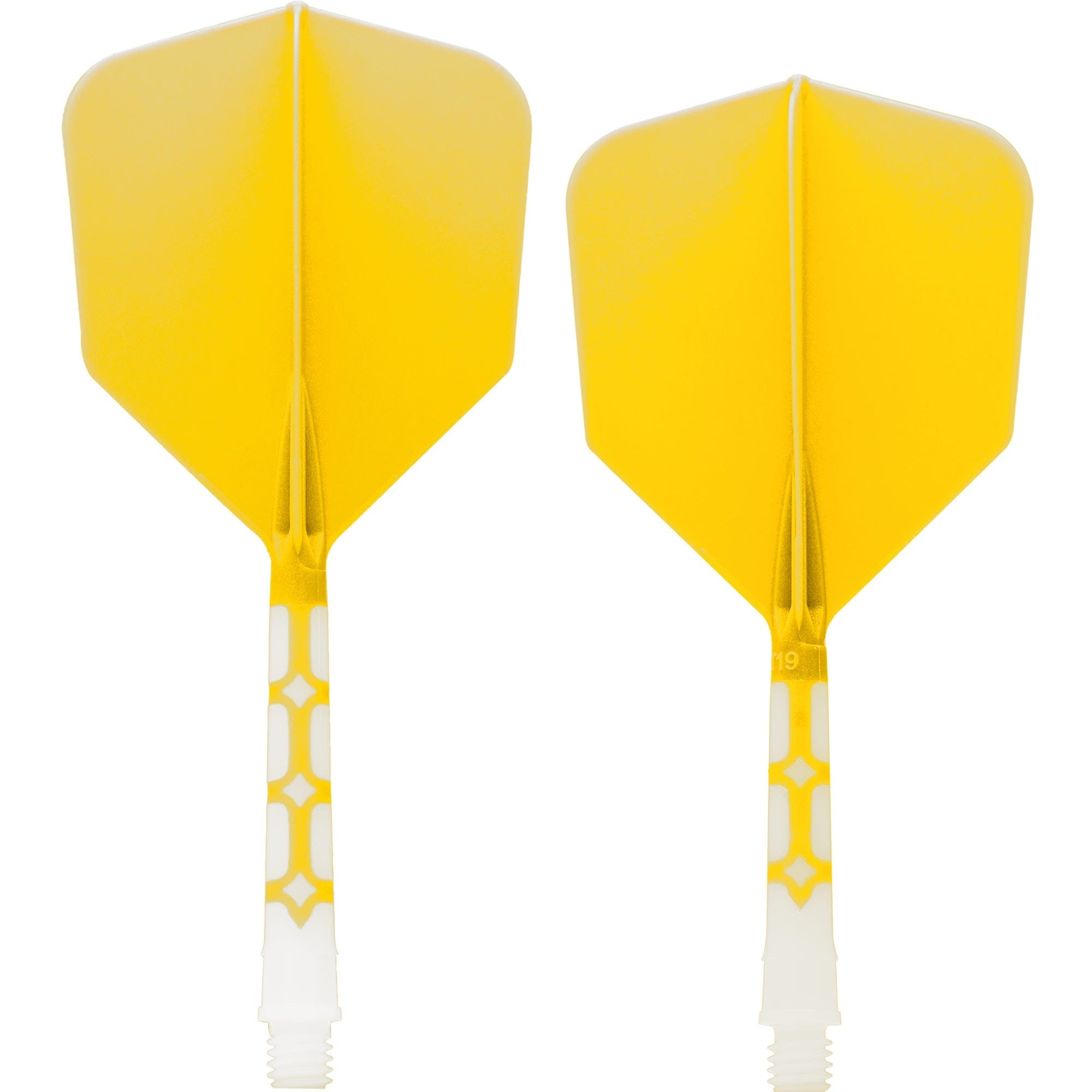 Cuesoul Rost T19 Integrated white dart shaft and big wing yellow flights. This fully moulded system screws into the barrel, just as with a standard stem. The yellow moulded flight features a reinforcing rib to help prevent Robin Hooding. The medium white dart shaft is measured for what is visible once the dart is assembled. Shaft length: 28mm
