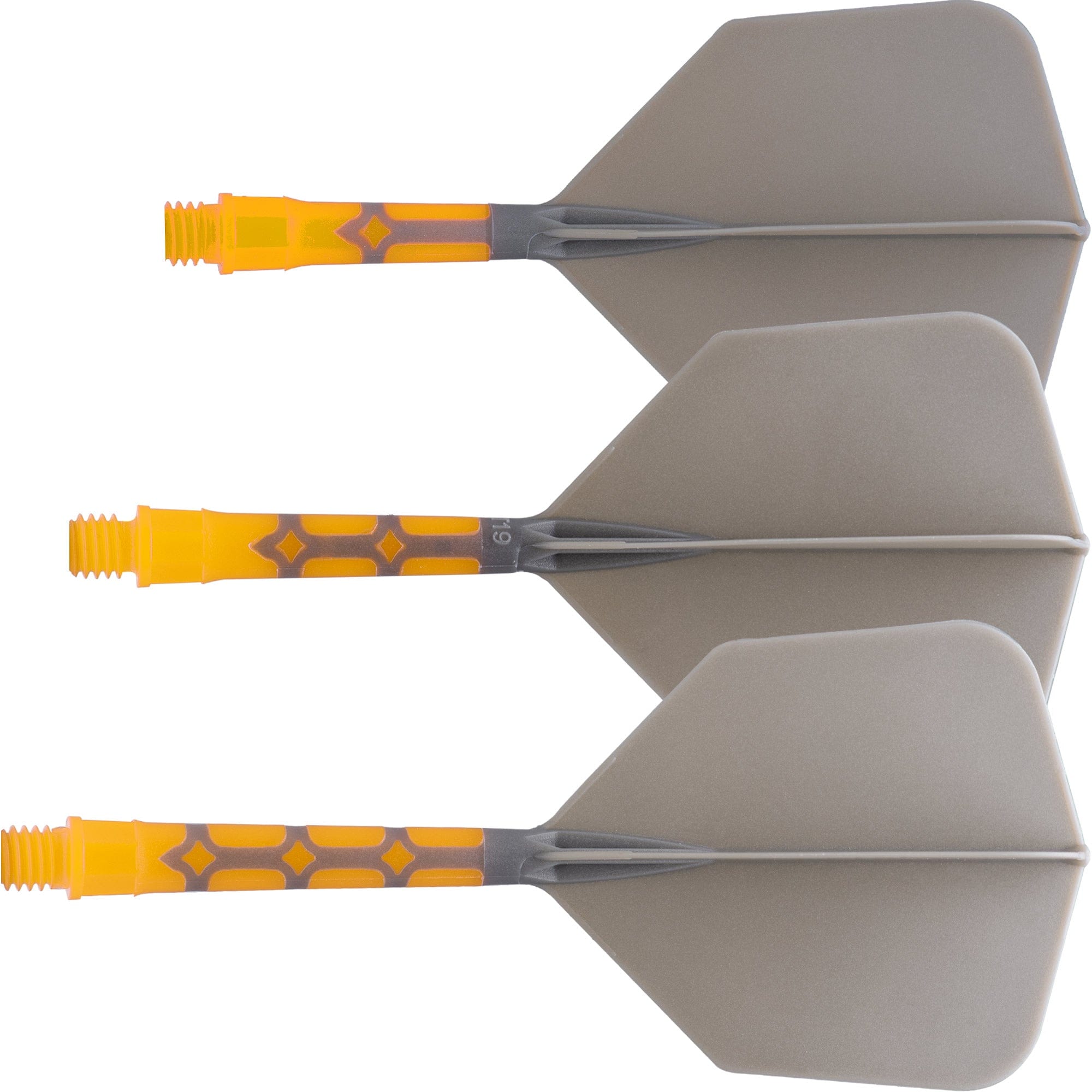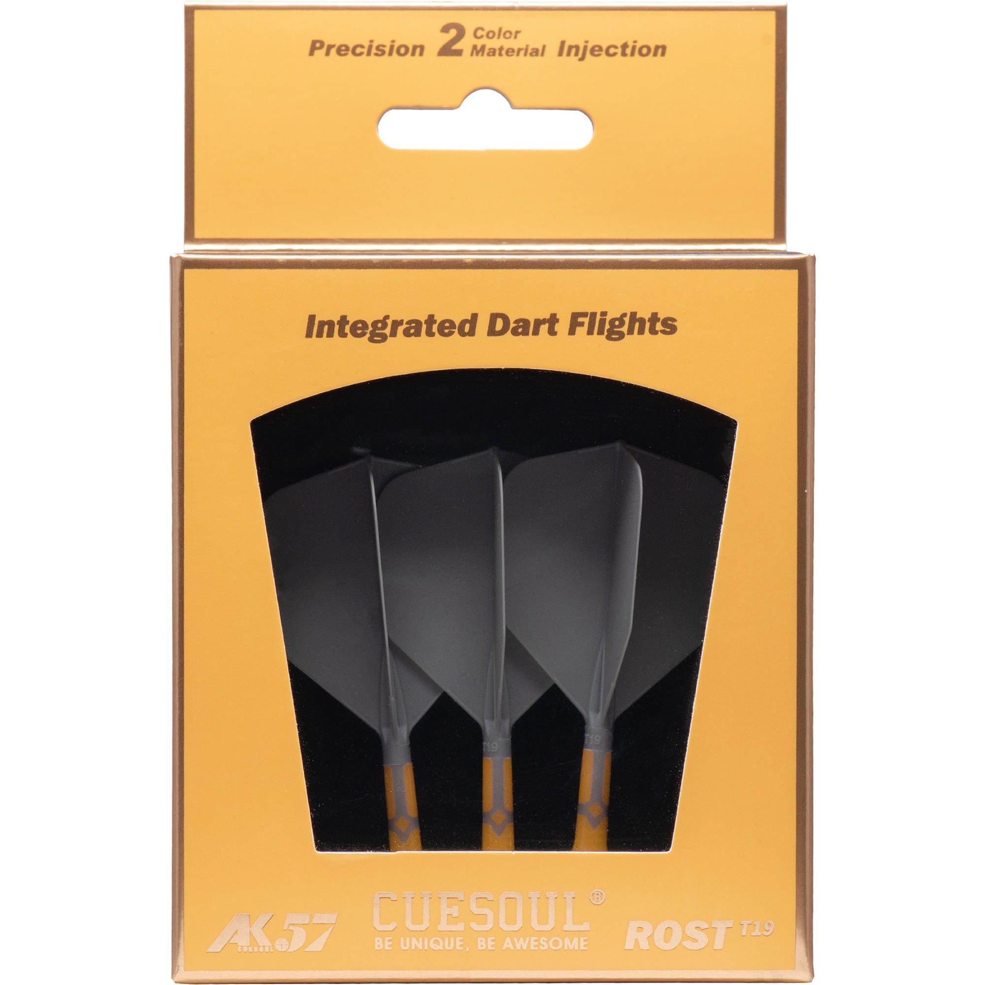 Cuesoul Rost T19 Integrated Dart Shaft and Flights. Yellow colour Shaft with Grey Flight comes in a Size S and a Big Wing shape. Ideal choice for players who tire of picking up flights and want to try the new ROST T19 flight system. Each pack contains 3 flights.