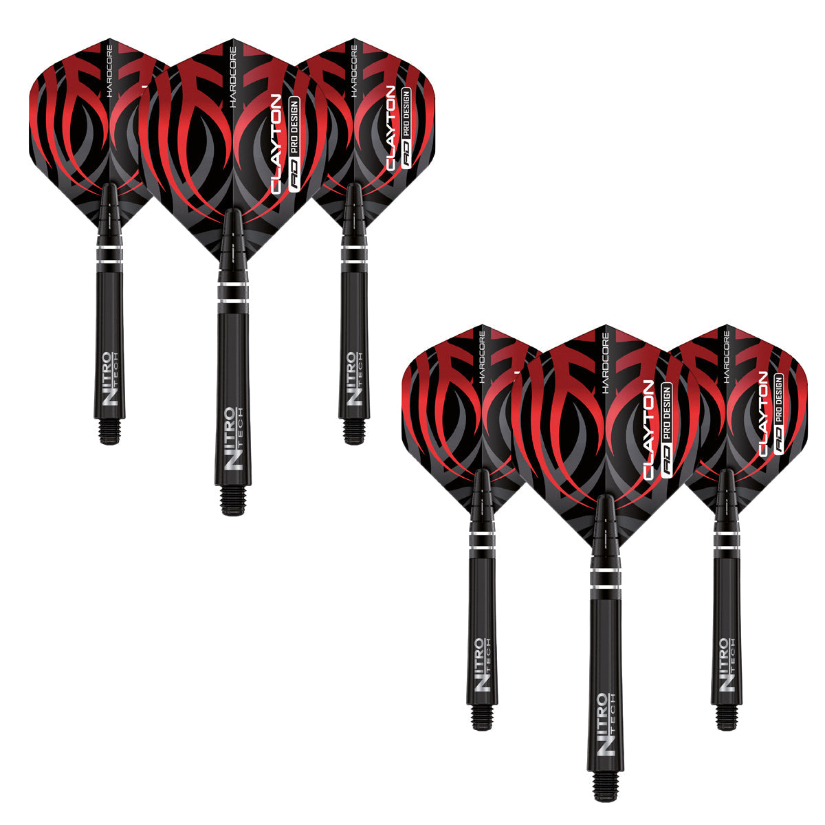 Hardcore Extra Thick Standard Jonny Clayton Dart Flights - 3 Sets Per Pack. Red Dragon Nitrotech Medium Black Dart Shafts - 3 sets per pack