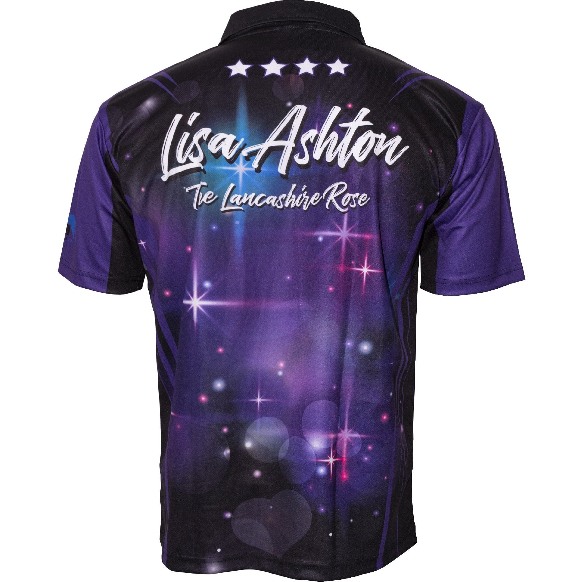Lisa Ashton Official Dart Shirt. Lightweight with Pocket - highly breathable material. Sizes: Small to 3XL Legend Darts - Lisa Ashton - Dart Shirt - The Lancashire Rose - Purple