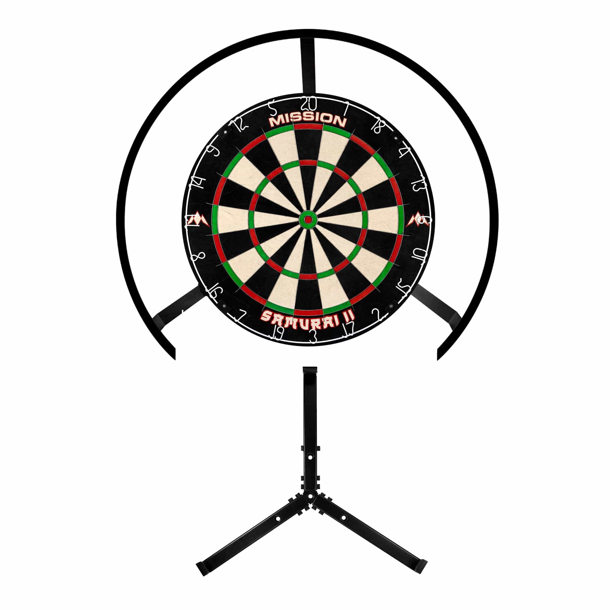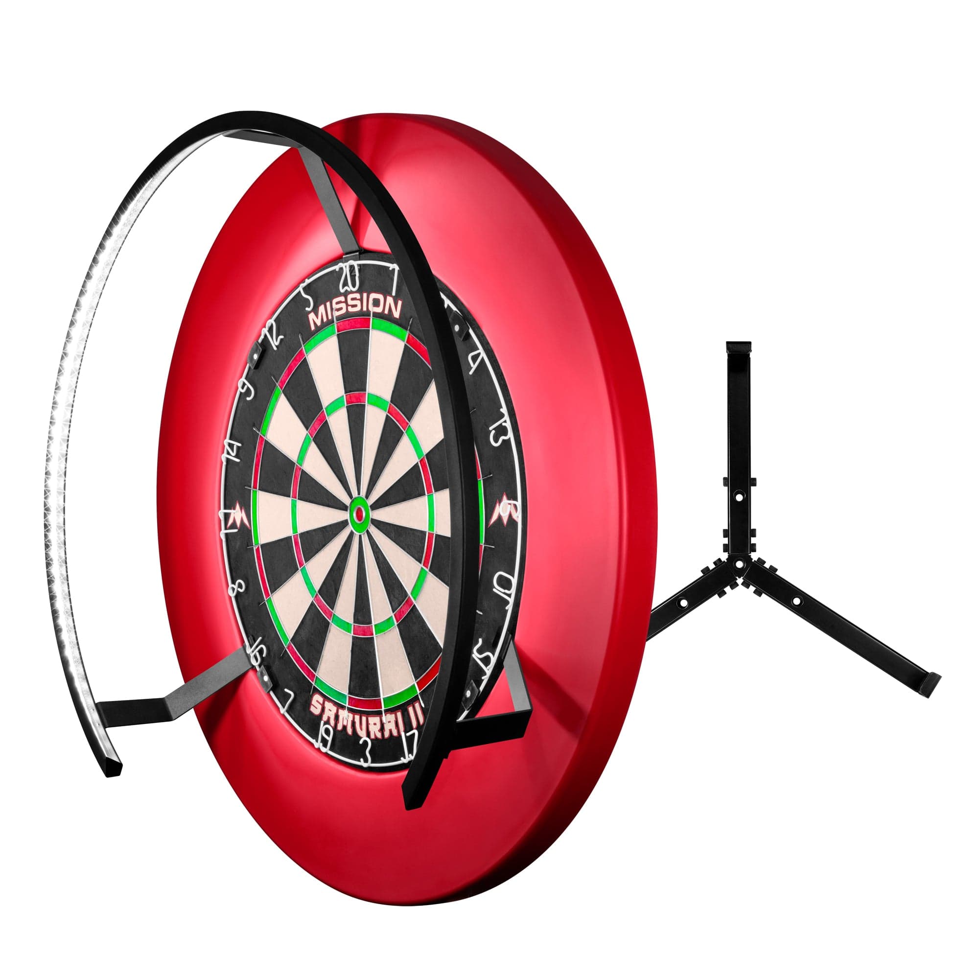 The Torus 270 is a simple way to light your dartboard, without shadows, to improve your vision of the board. The lighting system quickly clips to any dartboard and the unique 270-degree shape gives you easy access to retrieve your darts during play which is ideal for youth players. The lightweight frame features bright white LED lights to illuminate the entire dartboard, all without casting shadows or dazzling players. No matter what existing lighting you have in the room, the Torus 270 dartboard light creates continuous light over your board. In this unique design, the inside edge of the light rail is tilted 25 degrees outwards to allow even more light to reach the board. Once installed your Torus 270 wont moved if knocked. The simple fixings clips firmly onto the dartboard, which means you can use the Torus 270 dartboard light with any bristle board, with a board and surround, or even in a dartboard cabinet. Installation is very simple; use the Allen key provided to fasten the legs to the light frame, and then effortlessly clip the light to your dartboard. Simple! Mission Torus 270 Dartboard Lighting - Bright White Light - ALSO INCLUDES CLAMP AND SAMURAI 2