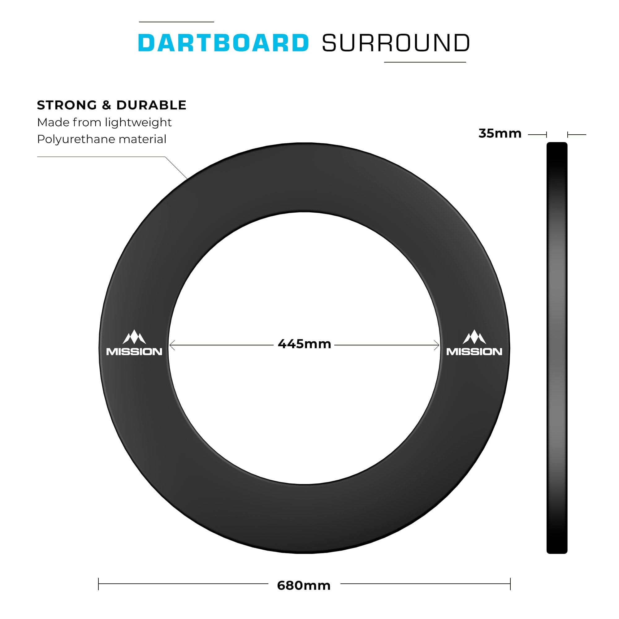 The Torus 270 is a simple way to light your dartboard, without shadows, to improve your vision of the board. The lighting system quickly clips to any dartboard and the unique 270-degree shape gives you easy access to retrieve your darts during play which is ideal for youth players. The lightweight frame features bright white LED lights to illuminate the entire dartboard, all without casting shadows or dazzling players. No matter what existing lighting you have in the room, the Torus 270 dartboard light creates continuous light over your board. In this unique design, the inside edge of the light rail is tilted 25 degrees outwards to allow even more light to reach the board. Once installed your Torus 270 wont moved if knocked. The simple fixings clips firmly onto the dartboard, which means you can use the Torus 270 dartboard light with any bristle board, with a board and surround, or even in a dartboard cabinet. Installation is very simple; use the Allen key provided to fasten the legs to the light frame, and then effortlessly clip the light to your dartboard. Simple! Mission Torus 270 Dartboard Lighting - Bright White Light - ALSO INCLUDES CLAMP, SAMURAI 2, BLUE LOGO SURROUND
