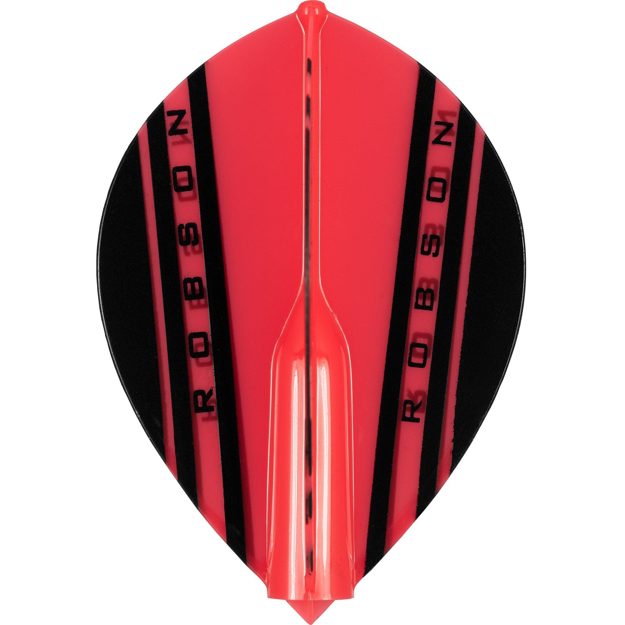 Robson Plus Pear Shape Dart Flights with V design. Made from a moulded plastic, these red flights simply push onto your normal shaft to give you a solid professional setup. As the flights do not have a specialist fitting, these red flights can be used on most nylon and aluminium shafts. Each pack is provided as one set of 3 flights.