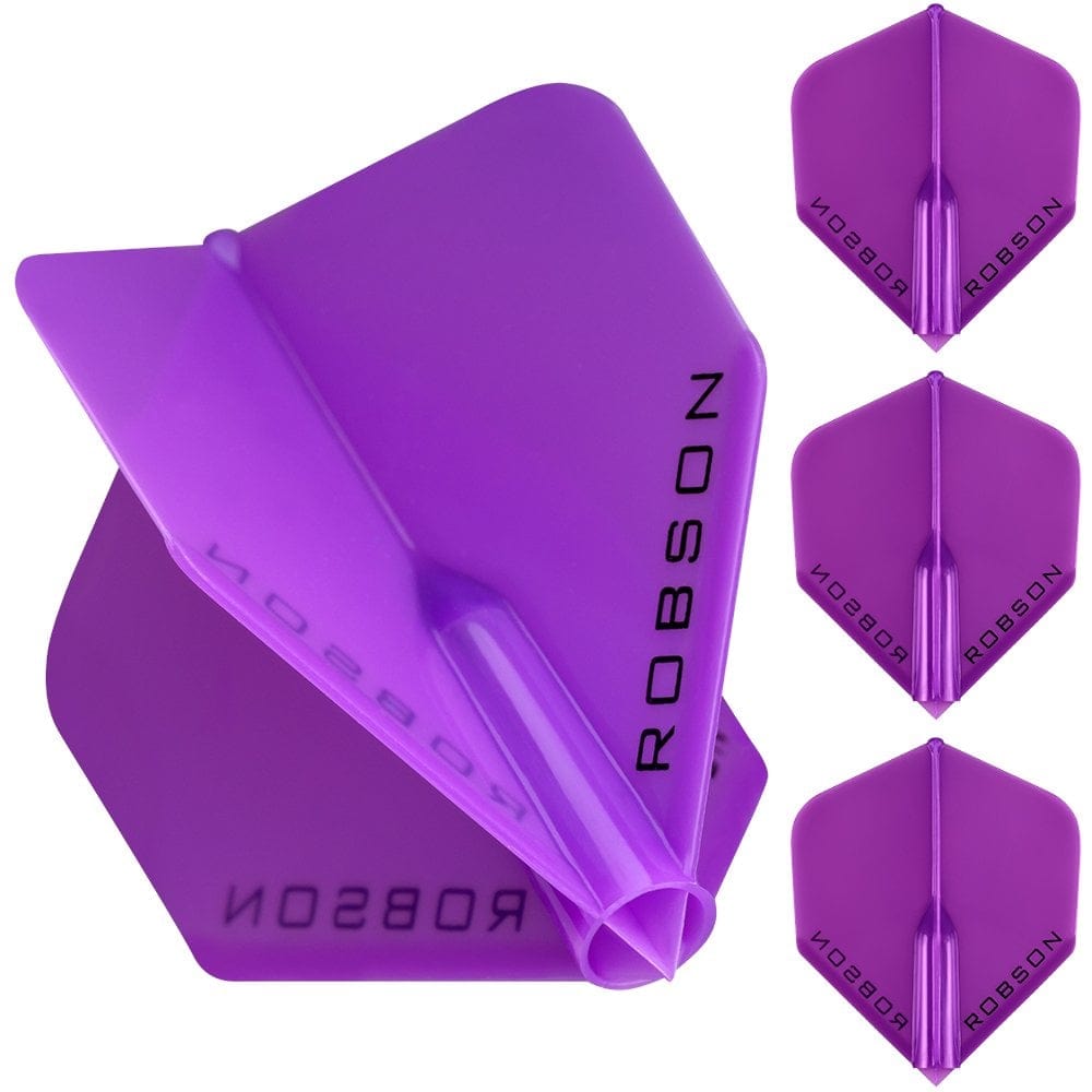 Robson Plus Standard Shape Dart Flights. Made from a moulded plastic, these purple flights simply push onto your normal shaft to give you a solid professional setup. As the flights do not have a specialist fitting, these purple flights can be used on most nylon and aluminium shafts. Each pack is provided as one set of 3 flights.
