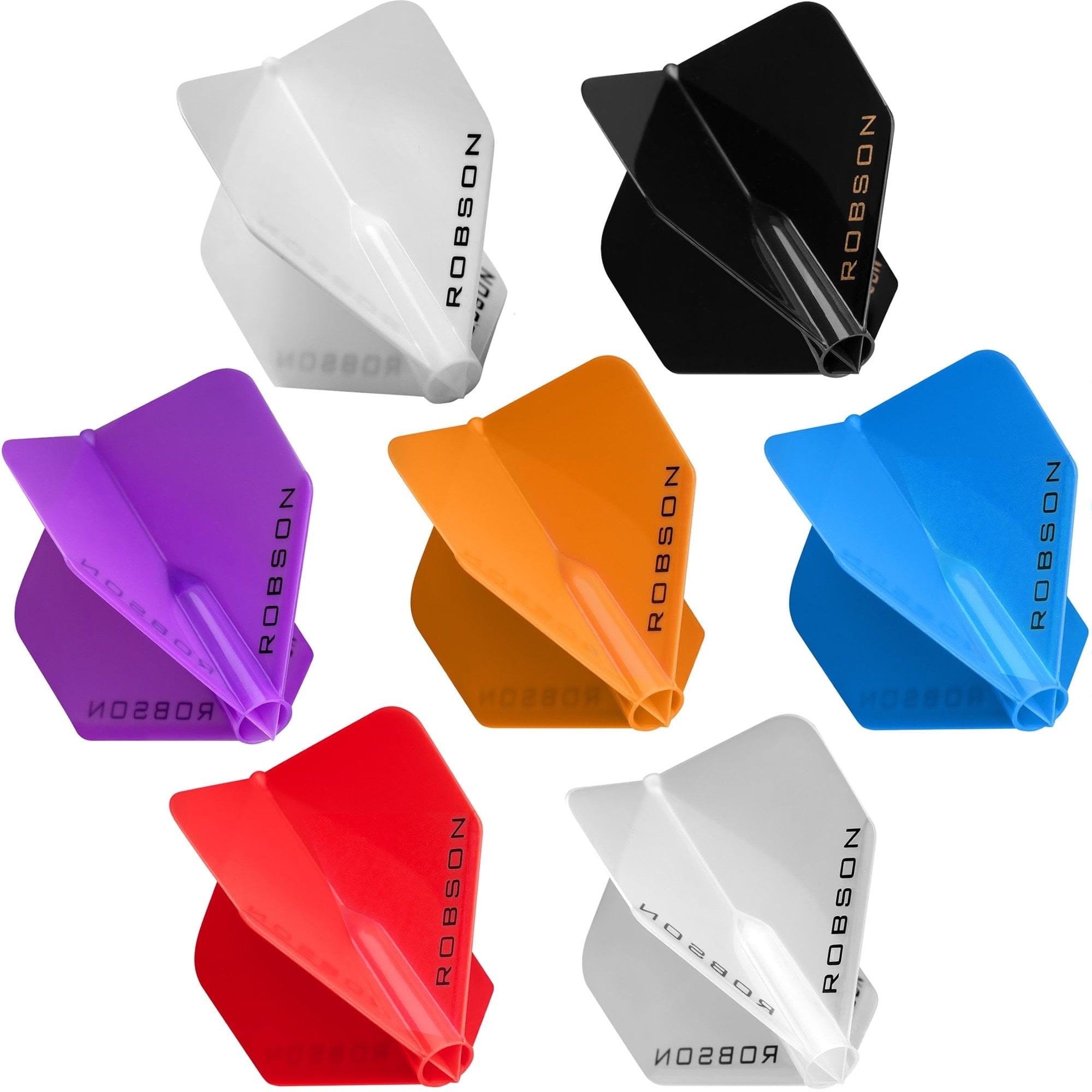 Robson Plus Standard Shape Dart Flights. Made from a moulded plastic, these clear flights simply push onto your normal shaft to give you a solid professional setup. As the flights do not have a specialist fitting, these clear flights can be used on most nylon and aluminium shafts. Each pack is provided as one set of 3 flights.