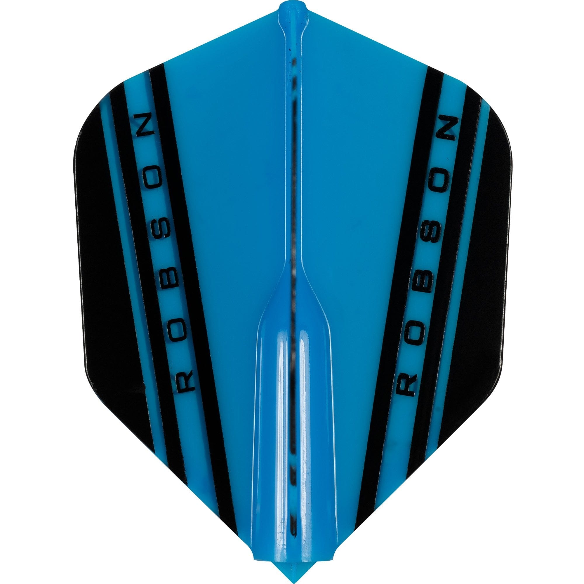 Robson Plus Small Standard Shape Dart Flights with V design. Made from a moulded plastic, these blue flights simply push onto your normal shaft to give you a solid professional setup. As the flights do not have a specialist fitting, these blue flights can be used on most nylon and aluminium shafts. Each pack is provided as one set of 3 flights.