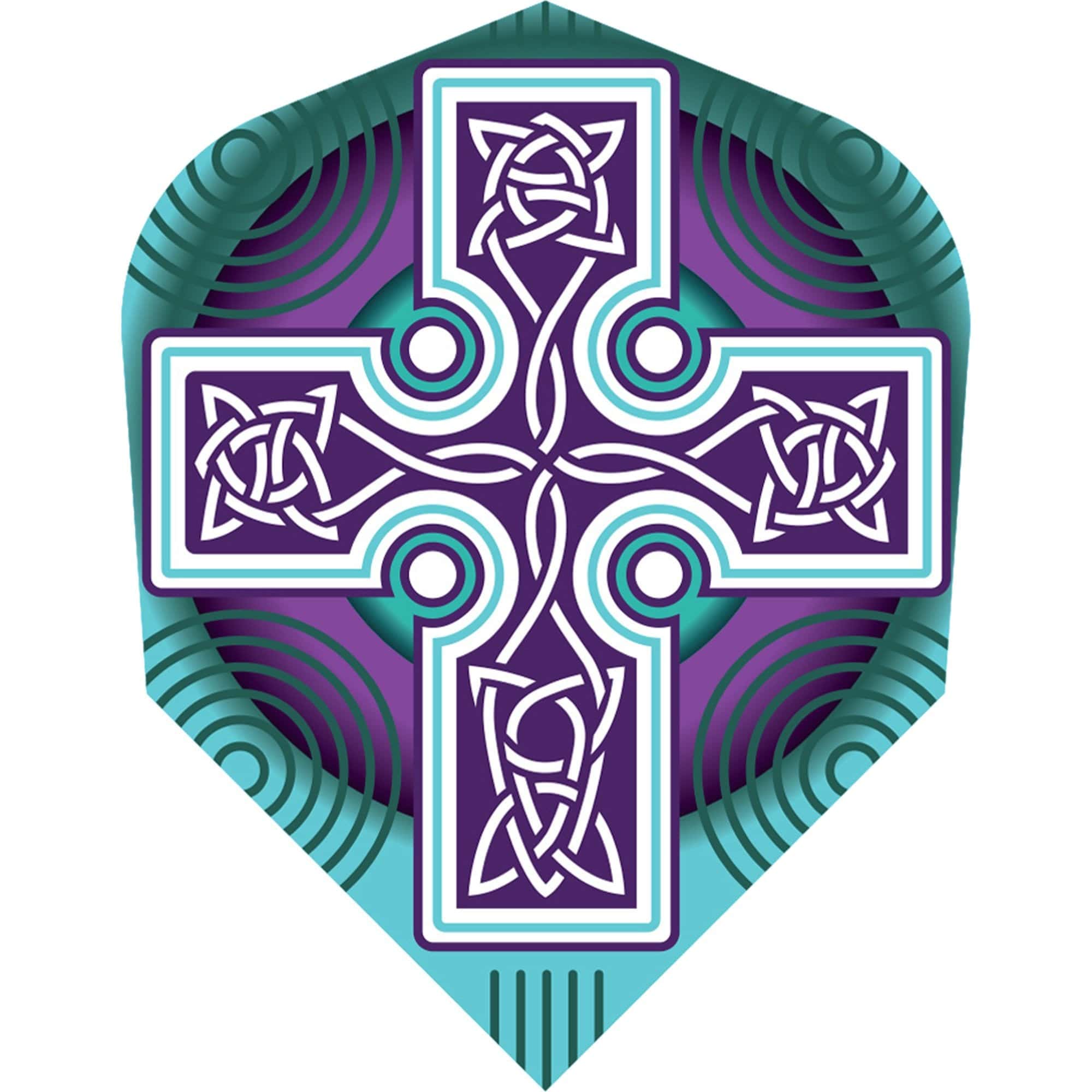 Shot Celt 100 Micron No6 Boudicca Dart Flights. These 100 Micron dart flights are an essential for ant darts set up. These flights come with a pale Blue background with an ornate deep Purple and White celtic cross design. Each pack contains 3 flights.
