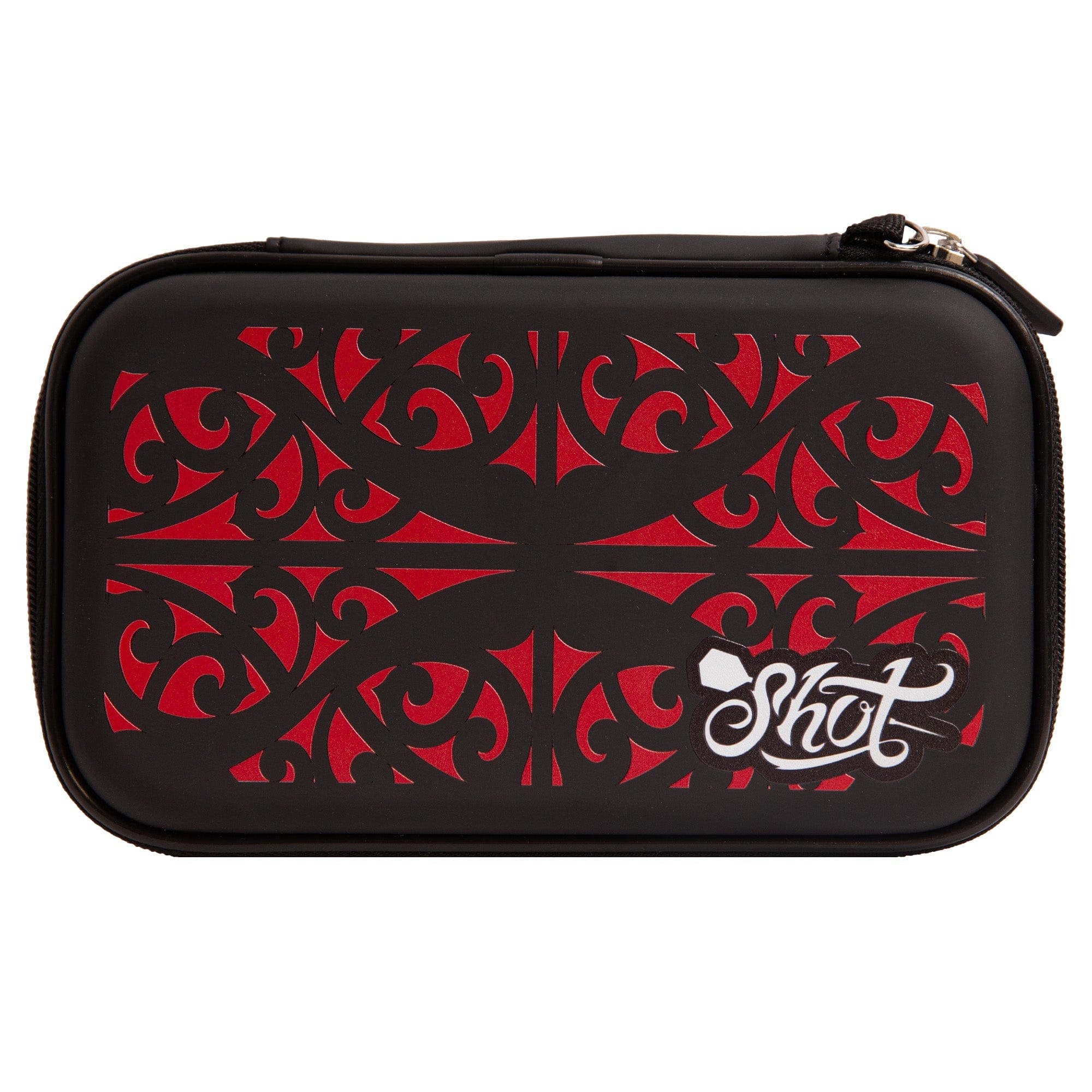 Shot EVA Darts Case - holds 2 sets of darts - Warrior - Red. Keep your darts safe and organized with this durable Shot EVA darts case, designed to hold two full sets securely. Featuring a stylish printed design and available in two striking colors, this lightweight yet protective case ensures your darts and accessories stay in top condition, whether at home or on the go. Please note, these are printed to order and so can take 2-4 days to be dispatched. This item is printed to order and may take an extra 2-6 days for delivery