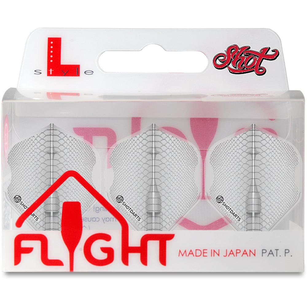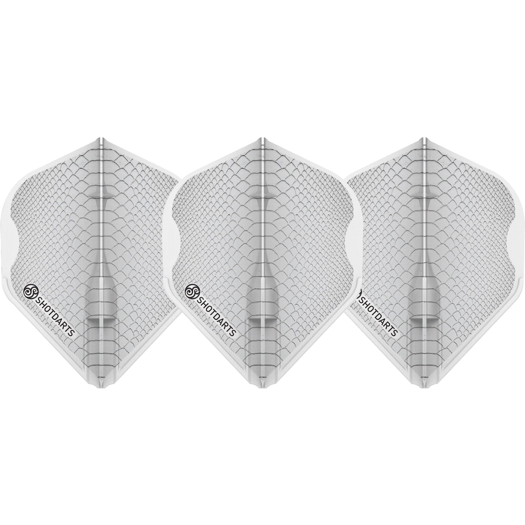 Shot EZ Intergrated Champagne Ring L-Flights - Americana Gator - White. One piece moulded. Strong and rigid for a true flight path. NB Only to be used with nylon style shafts.