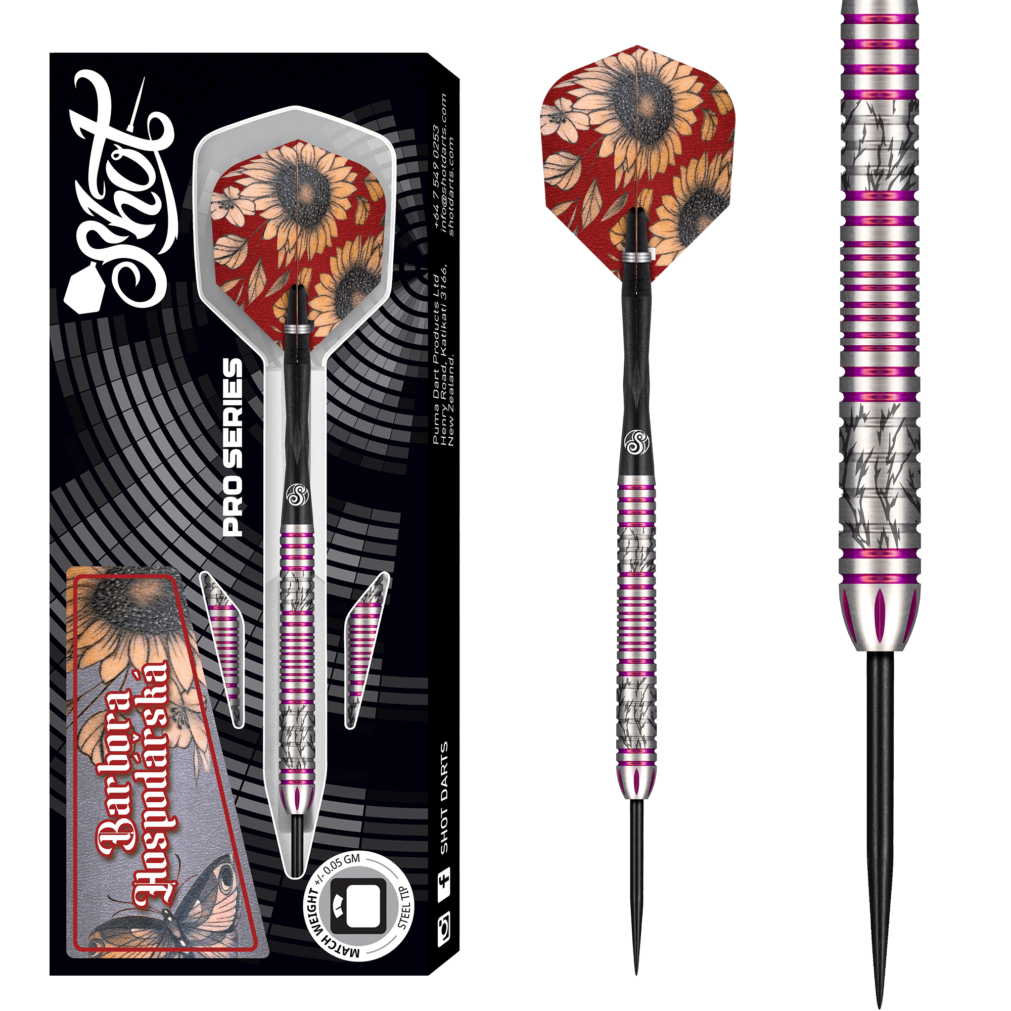 Shot Pro Series Darts - Steel Tip - 90% Tungsten - Barbora Hospodárská 2.0 - 23g
