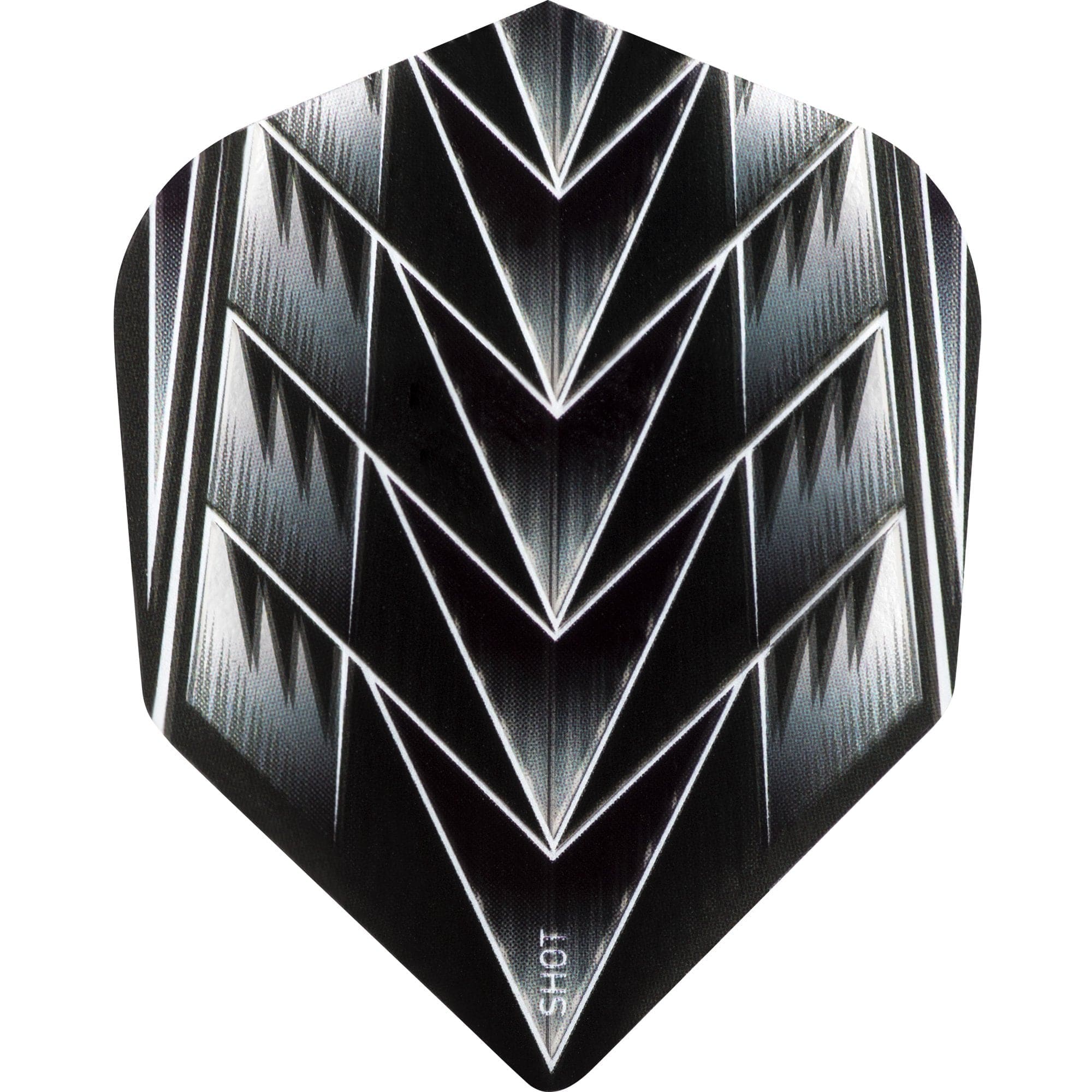 Shot Tribal Weapon 100 Micron Transparent Std No6 Black Dart Flights. Add these transparent dart flights to your darts set up. These flights come with a Black background and feature a White triangular design across the flight and a small Shot logo on the tip. Each set contains 3 flights.