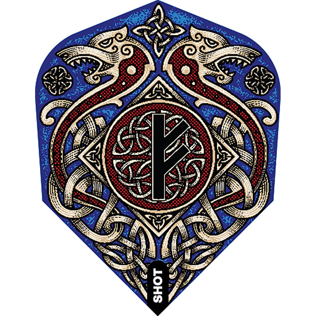 Shot Viking Dart Flights - 100 Micron - Std - No6 - Rannsaka. These dart flights from the Viking Collection feature a detailed picture with main feature being 2 dragons. They are made in the most popular 100 Micron material for strength and durability. Each pack contains 3 flights.
