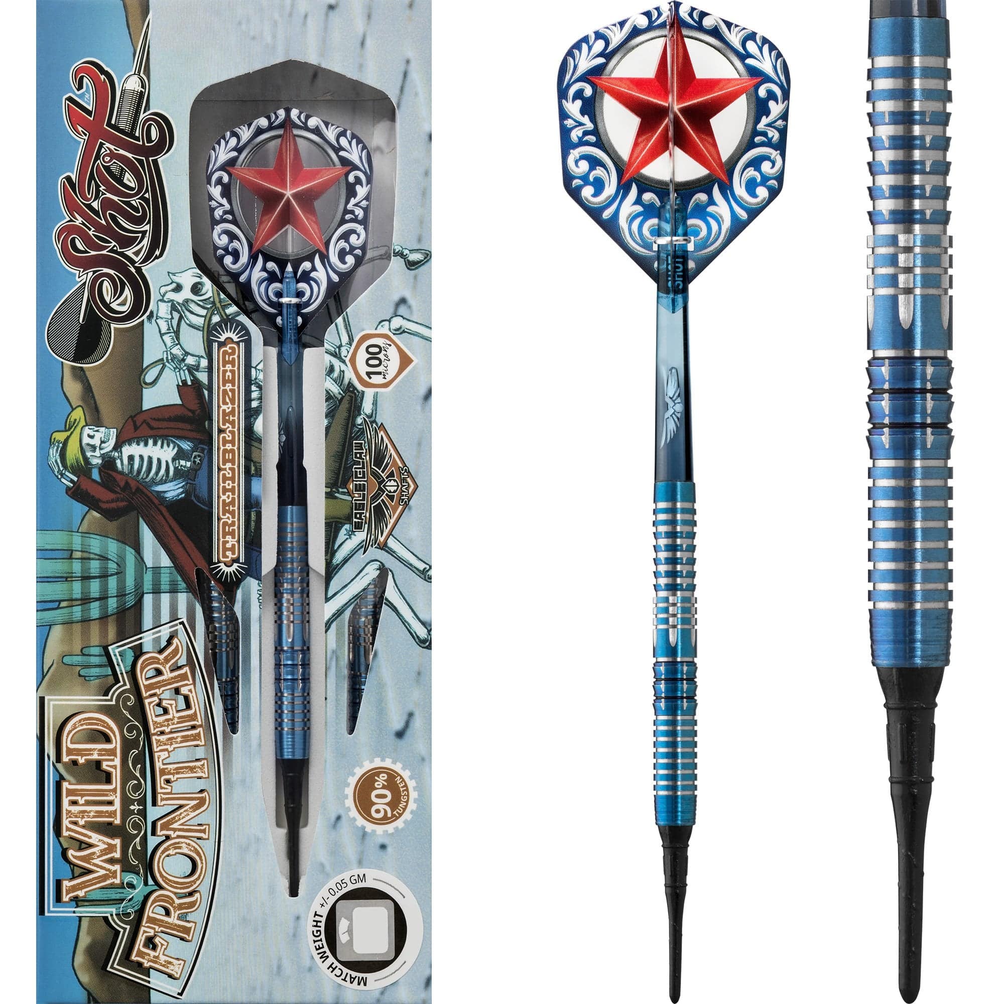 Shot Wild Frontier Trailblazer - Soft Tip Tungsten Darts. Features: 90 Percent Tungsten Barrels, Shot Shafts, Shot Flights.